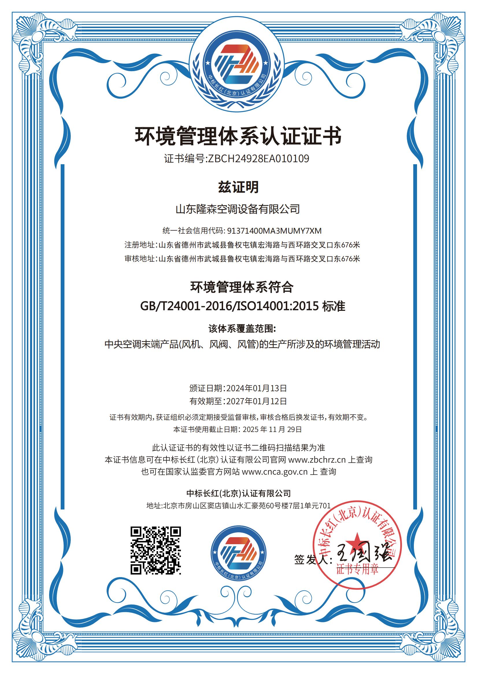 山東隆森空調設備有限公司座落于素有“九達天衢、神京門戶”美譽之稱的美麗德州,注冊資金1000萬,公司成立于2002年前身為山東明通通風空調設備加工廠。從事中央空調系統設備、通風設備、防排煙設備、玻璃鋼產品的制造、銷售、安裝及研發于一體的現代化企業。山東瀧森空調設備有限公司生產的產品主要有:排煙風機、消防排煙風機、離心風機、 新風換氣機、新風機組、凈化空調機組、醫用空調組合機組、螺桿機組、風冷機組、醫用凈化空調機組、吊頂式機組、轉輪式新風換氣機機組、風機盤管、排煙風機箱、混流風機、排煙防火閥......